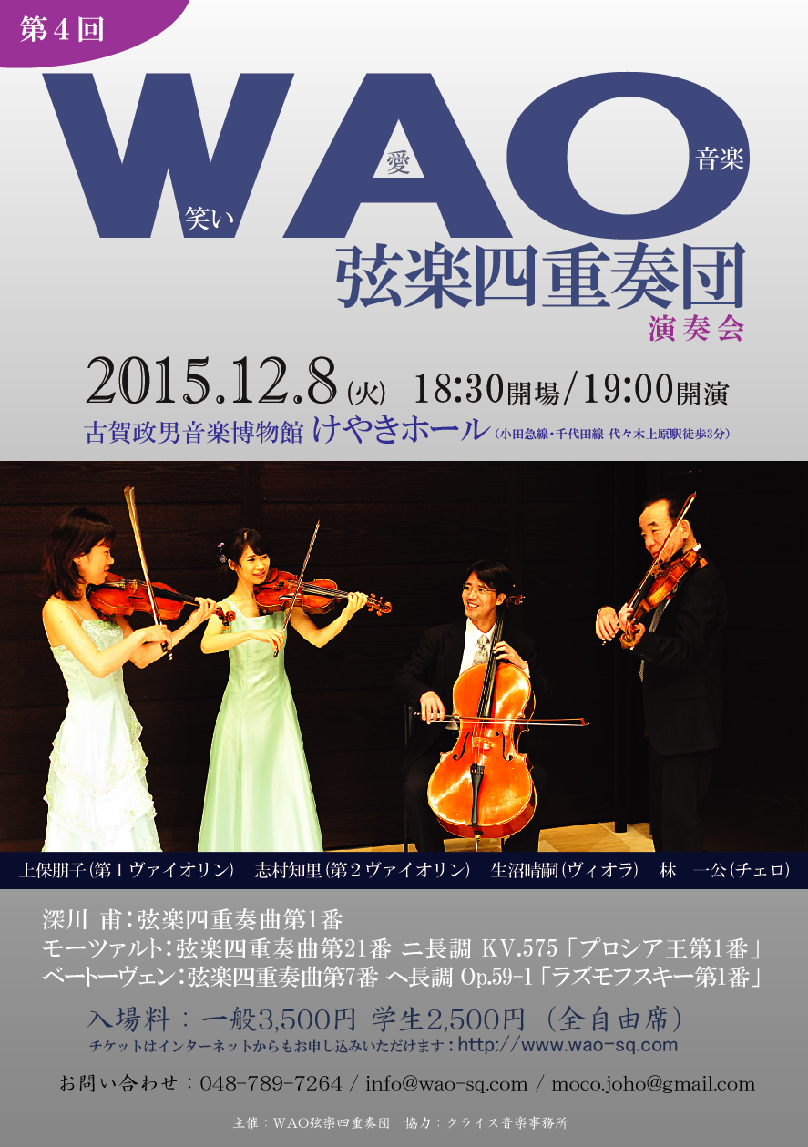第4回 WAO弦楽四重奏団演奏会のお知らせ